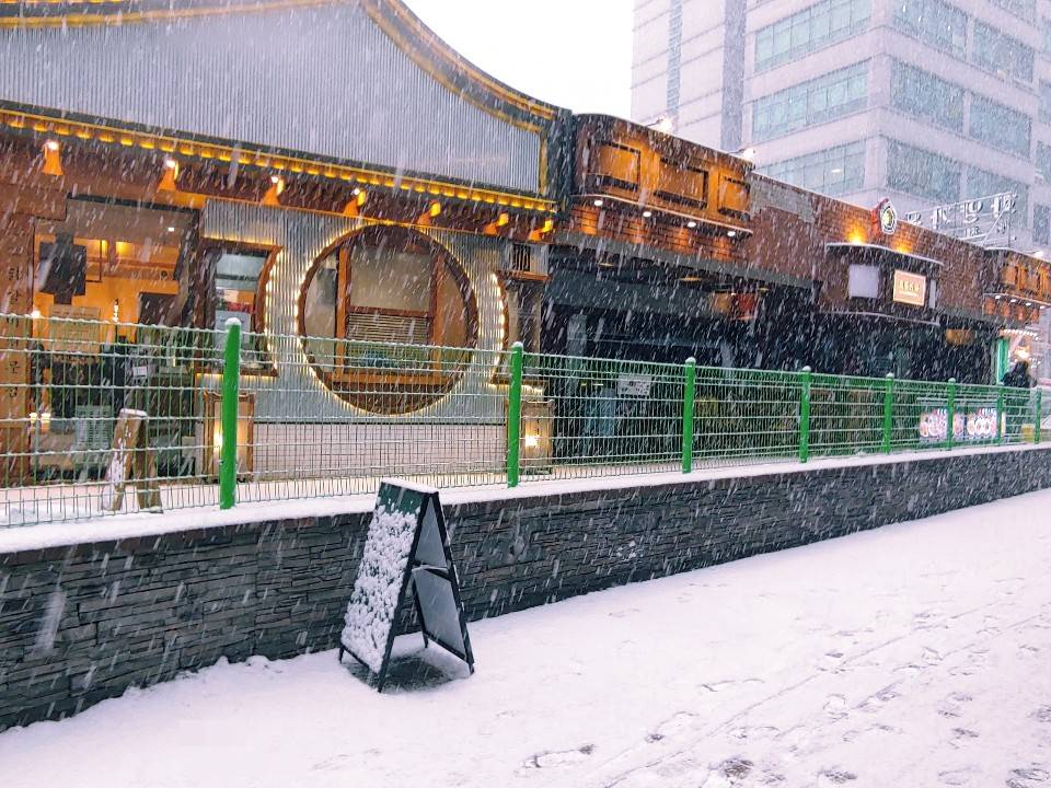 짧은 시간에 눈이 엄청 내리면서 이제 막 땅이 보이는 길을 다시 하얗게 덮었습니다. 너무 순식간이라 그 시간에 도로에 있던 차들은 당황할 수밖에 없습니다. 현재 대설주의보. 교통대란 예상으로 대중교통 이용 긴급재난문자가 계속 오고 있습니다.